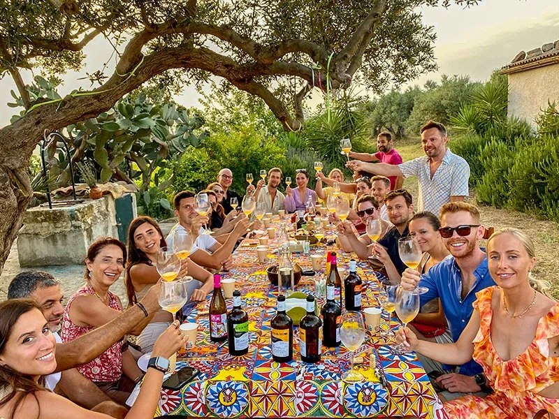 We organize the wine tasting open-air at our farm based in Alcamo (TP), in Sicily.